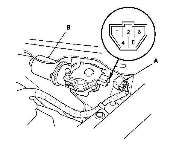3. Disconnect the 5P connector (A) from the wiper motor (B).