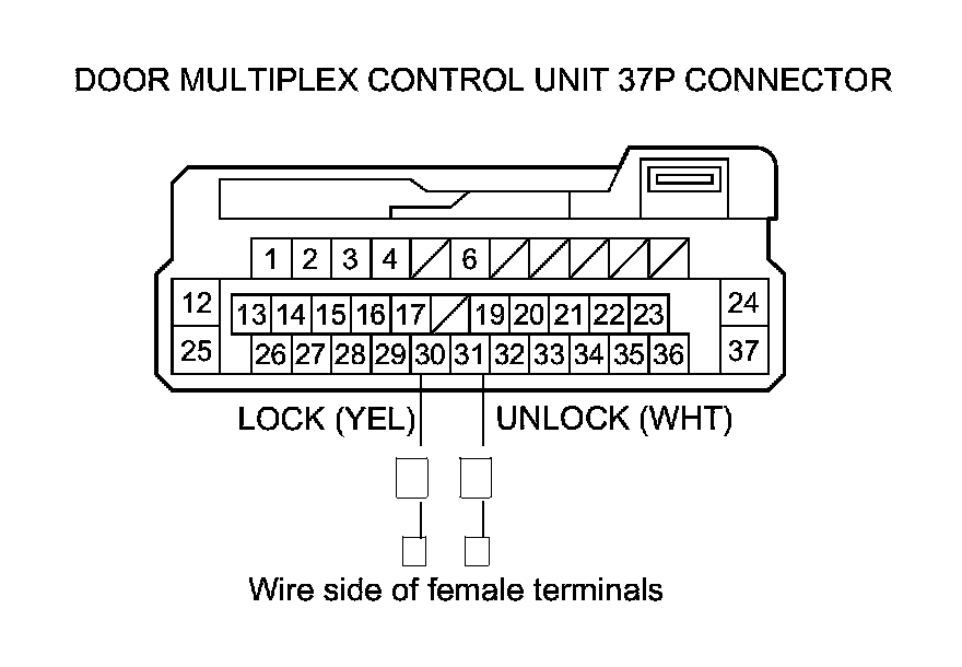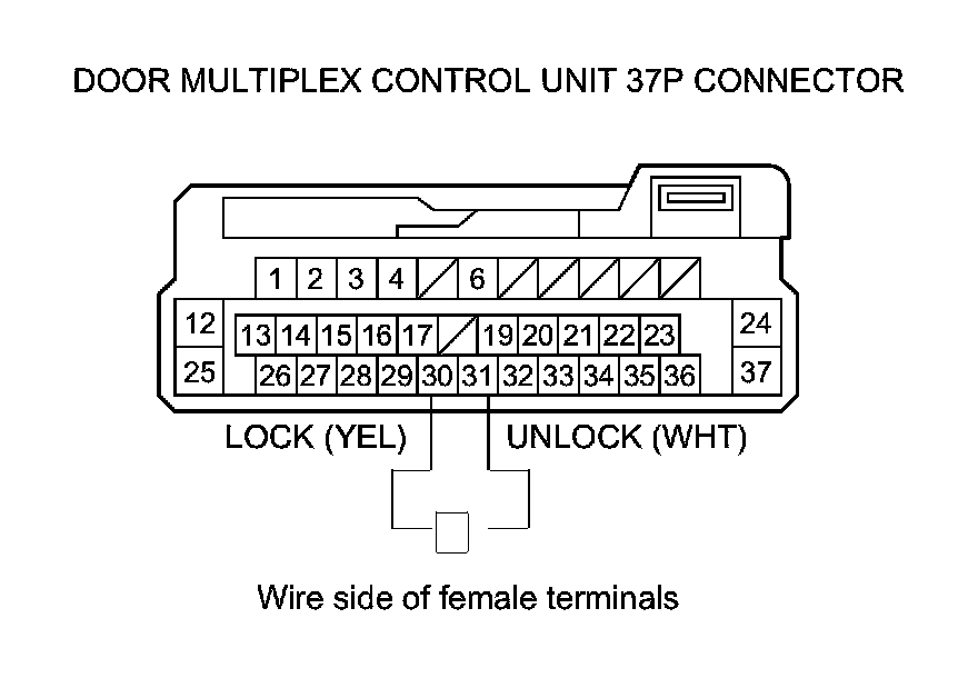 14. Check for continuity between door multiplex control unit 37P connector terminals No. 30 and No. 31.