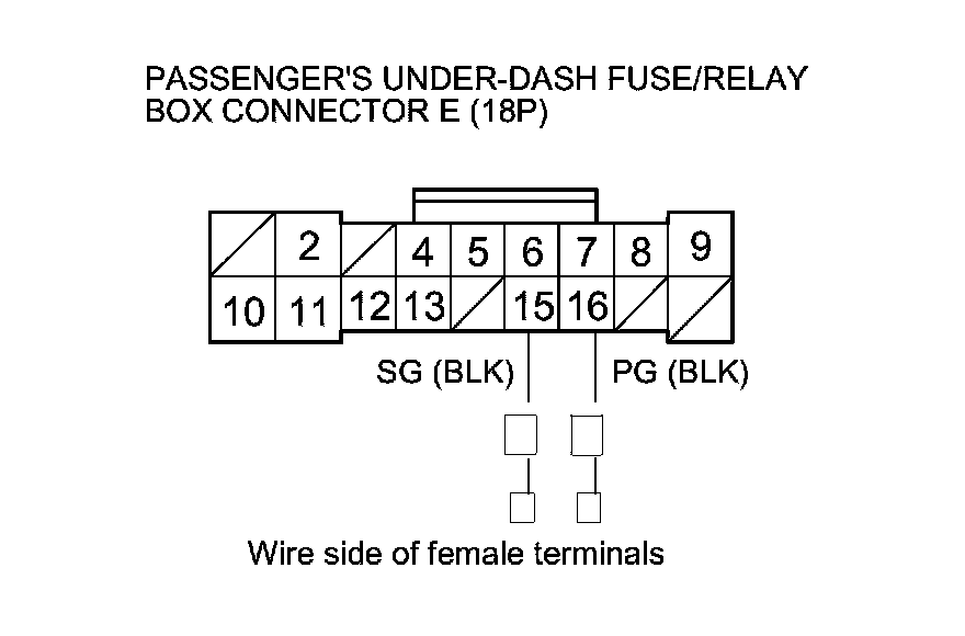 13. Disconnect passenger's under-dash fuse/relay box connector E (18P).