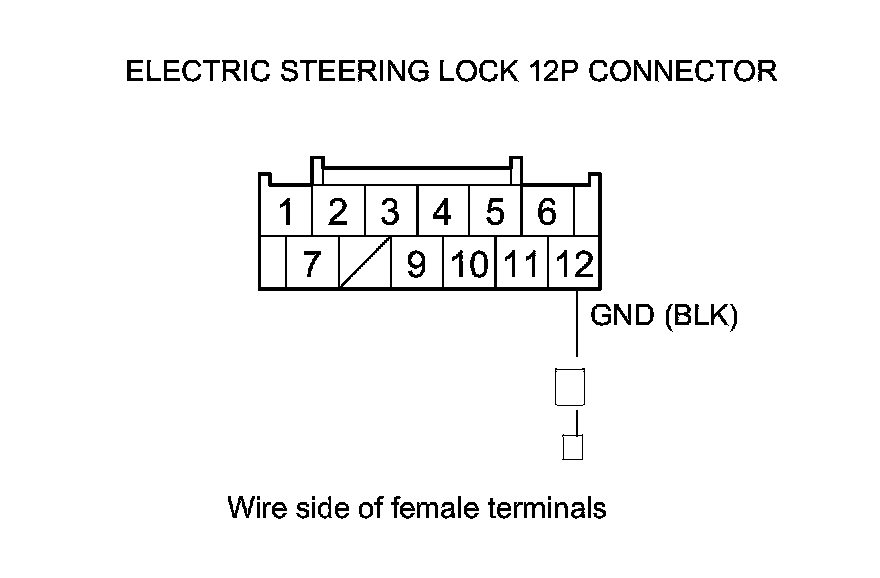 4. Measure the voltage between body ground and electric steering lock 12P connector terminal No. 12.