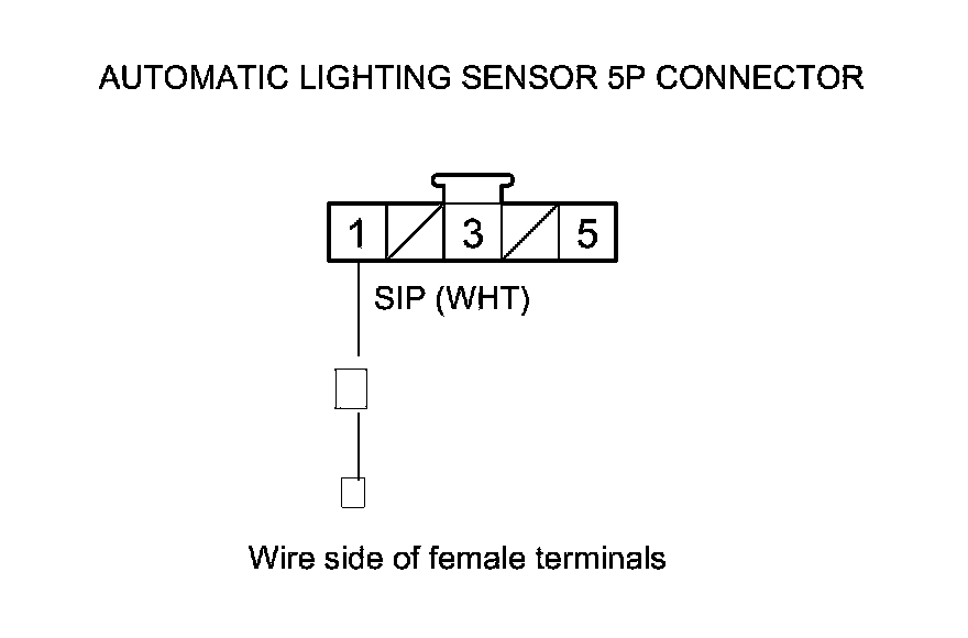 8. Measure the voltage between body ground and automatic lighting sensor 5P connector terminal No. 1.