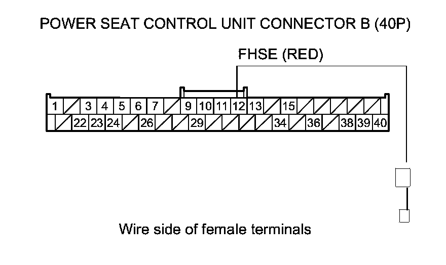 13. Check for continuity between body ground and power seat control unit connector B (40P) terminal No. 12.