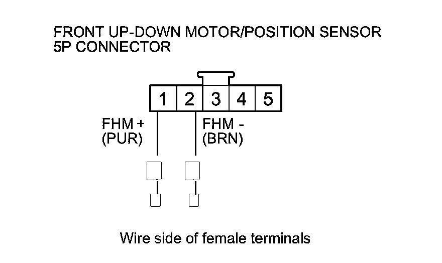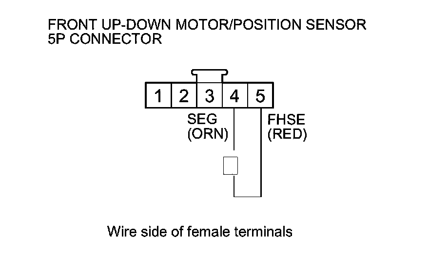16. Measure the voltage between front up-down motor/position sensor 5P connector terminals No. 5 (+) and No. 4 (-).