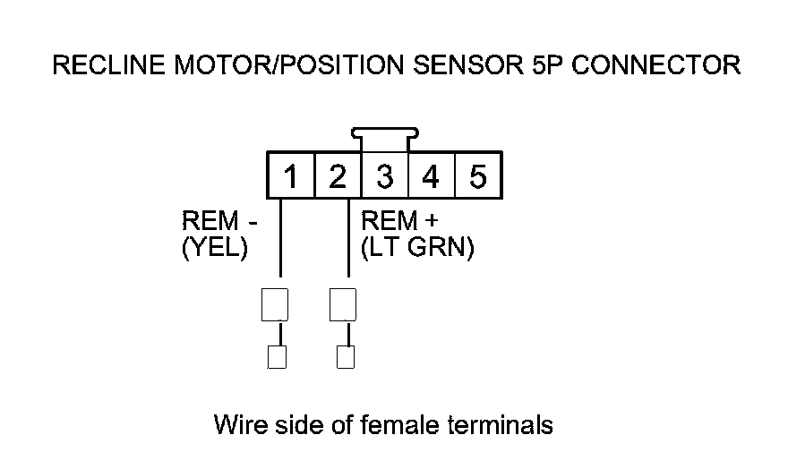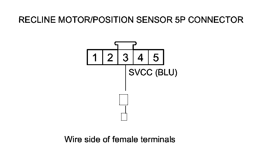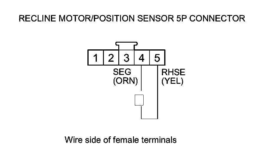 16. Measure the voltage between recline motor/position sensor 5P connector terminals No. 5 (+) and No. 4 (-).