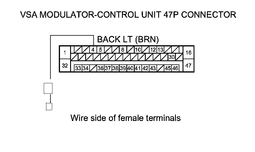 Check for loose terminals in the VSA modulator-control unit 47P connector. If the VSA modulator-control unit was updated, substitute a known-good VSA modulator-control unit Service and Repair, then retest. If the VSA modulator-control unit was substituted, go to step 1.