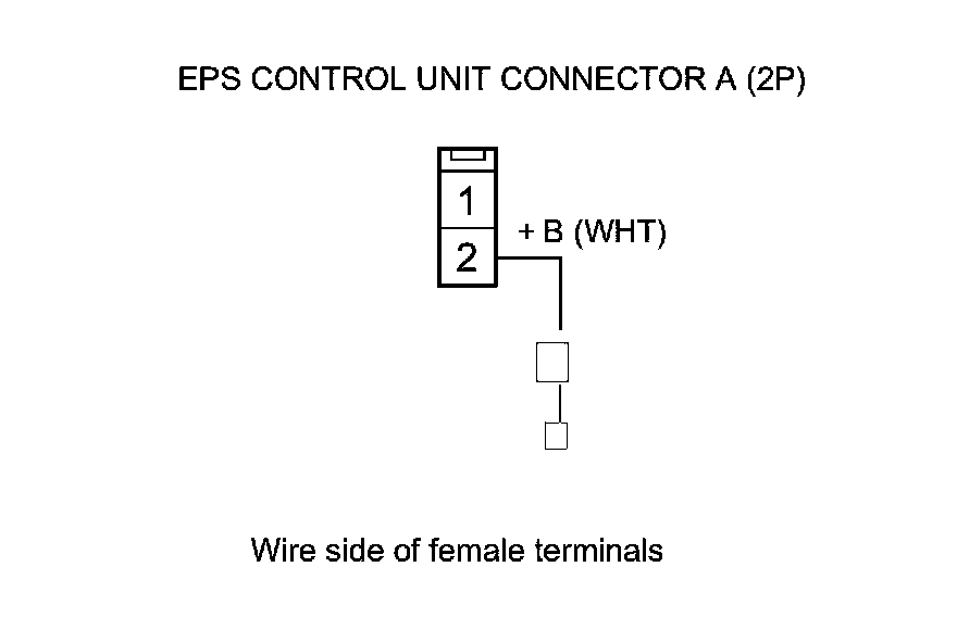 14. Measure the voltage between EPS control unit connector A (2P) terminal No. 2 and body ground.