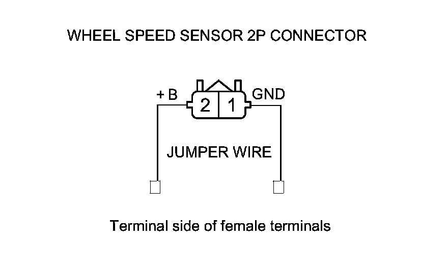 15. Connect the wheel speed sensor 2P connector terminals No. 1 and No. 2 to body ground with a jumper wire.