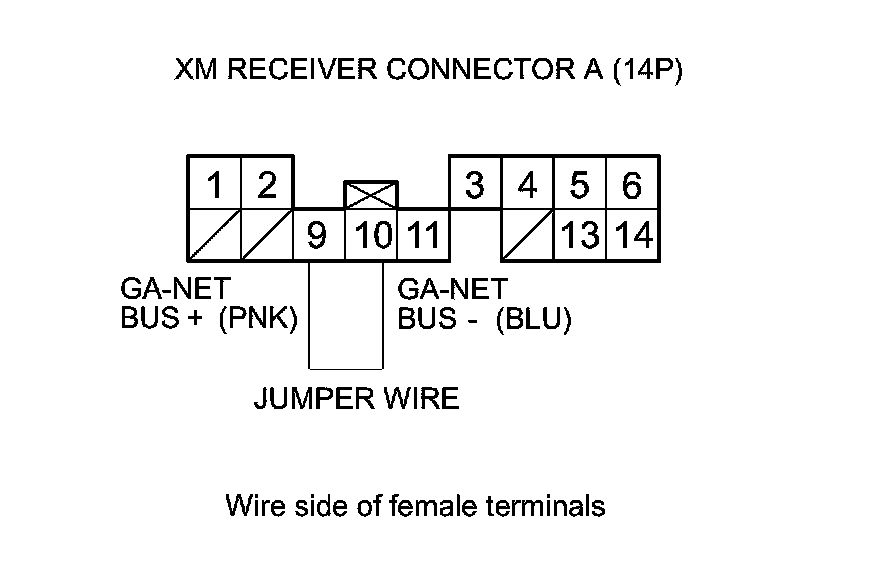 9. Connect XM receiver connector A (14P) terminals No. 9 and No. 10 with a jumper wire.