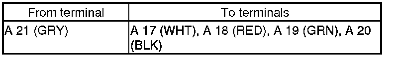 11. Check for continuity between body ground and AcuraLink control unit connector A (32P) terminals No. 17, No. 18, No. 19, and No. 20 individually.
