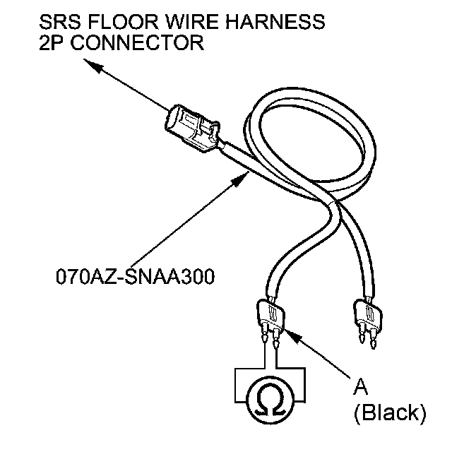 16. Measure the resistance between the terminals of the black SRS simulator lead (A). There should be an open circuit or at least 1 MOhms.