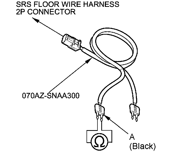 15. Measure the resistance between the terminals of the black SRS simulator lead (A). There should be less than 1.0 Ohms.
