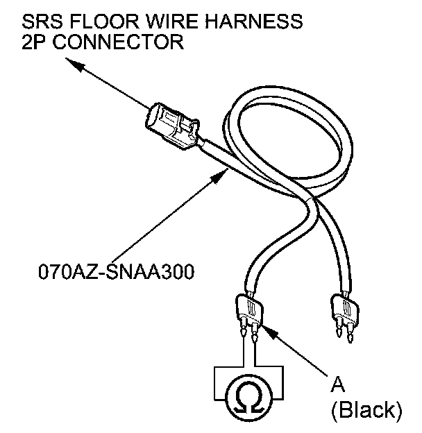 15. Measure the resistance between the terminals of the black SRS simulator lead (A). There should be less than 1.0 Ohms.