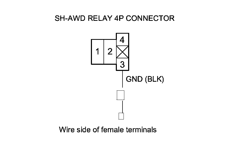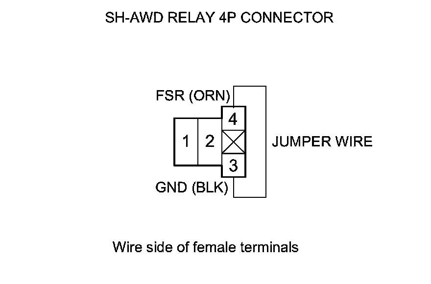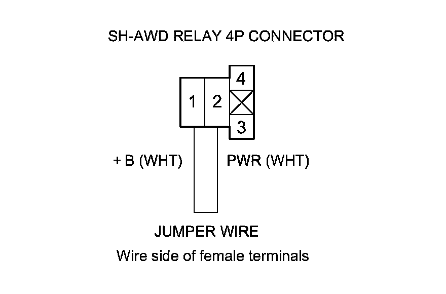 13. Connect SH-AWD relay 4P connector terminals No. 3 and No. 4 with a jumper wire.