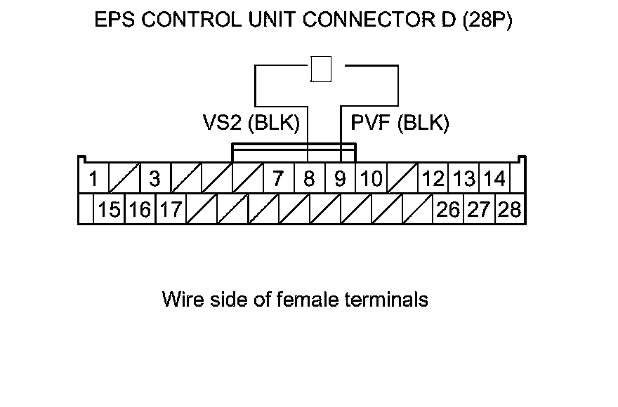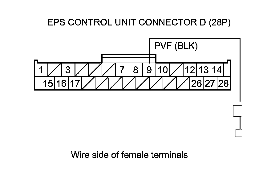 8. Check for continuity between EPS control unit connector D (28P) terminal No. 9 and body ground.