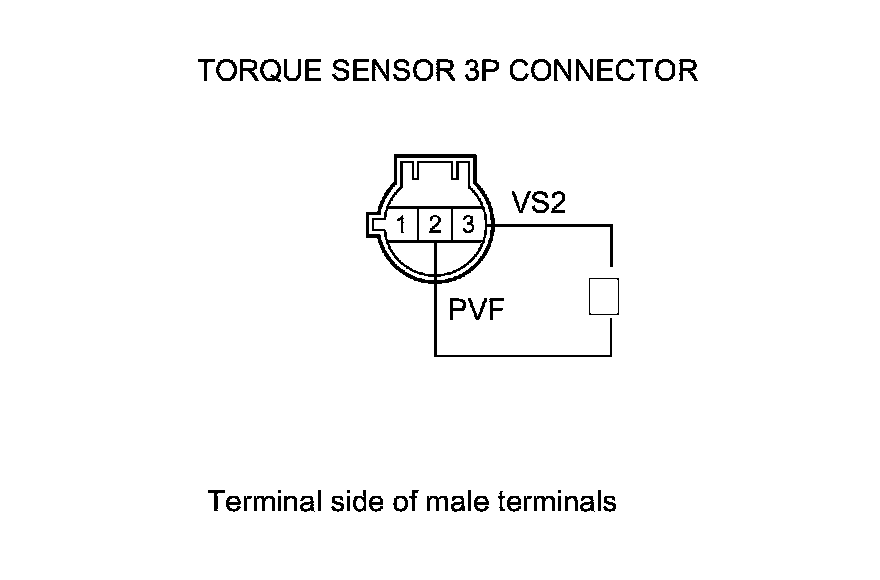 14. On the sensor side, measure the resistance between torque sensor 3P connector terminals No. 2 and No. 3.