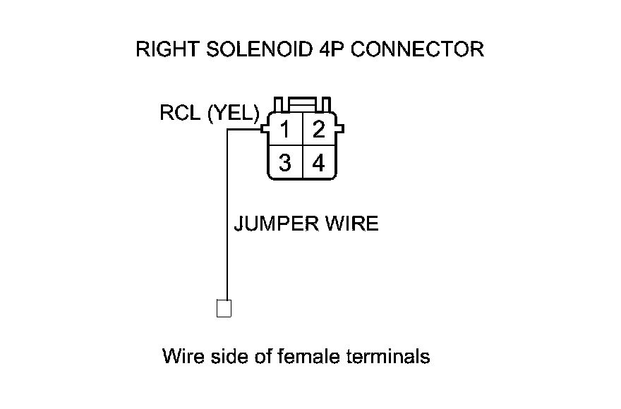 12. Remove the jumper wire from right solenoid 4P connector terminal No. 2.