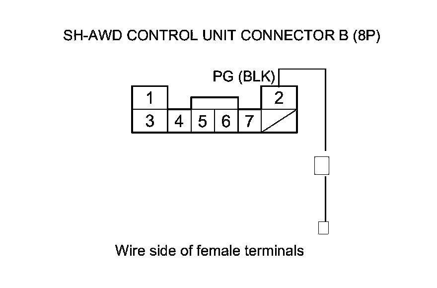 8. Check for continuity between SH-AWD control unit connector terminal B7 and body ground.