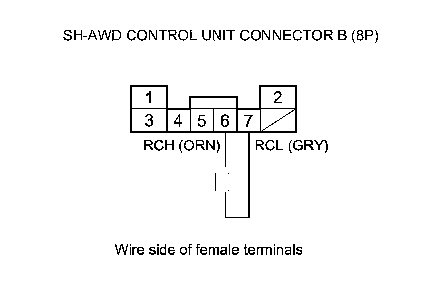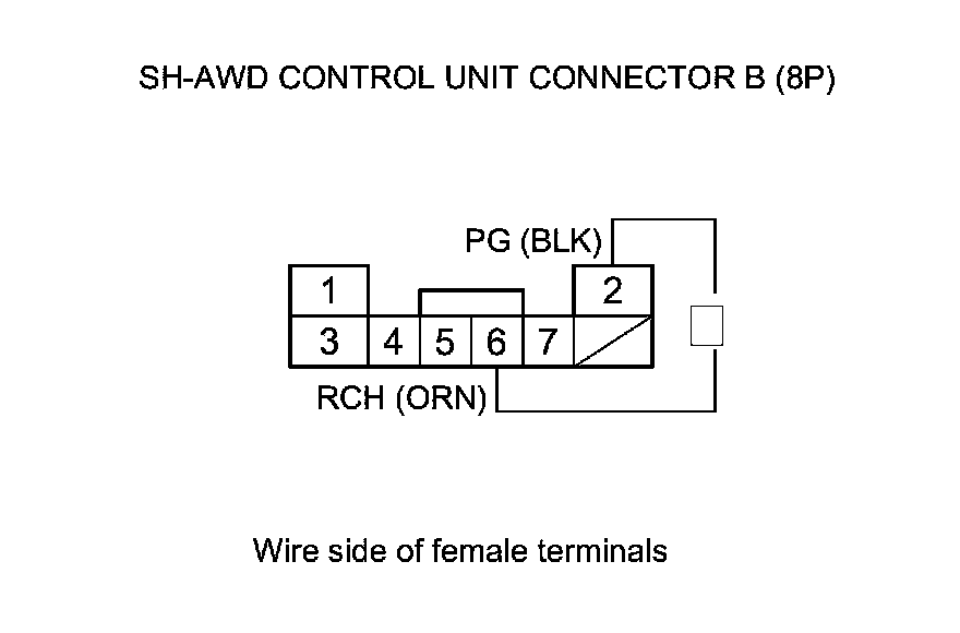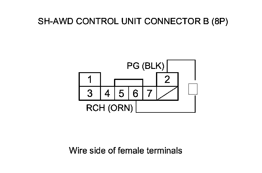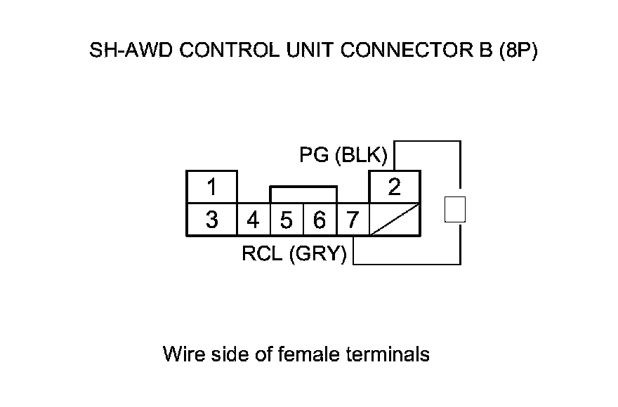 15. Check for continuity between SH-AWD control unit connector terminals B2 and B7.