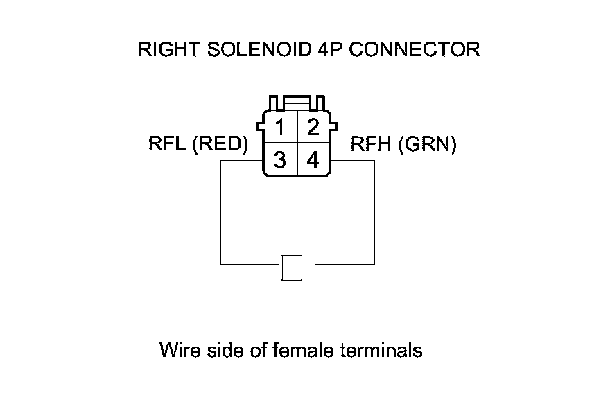7. Check for continuity between right solenoid 4P connector terminals No. 3 and No. 4.