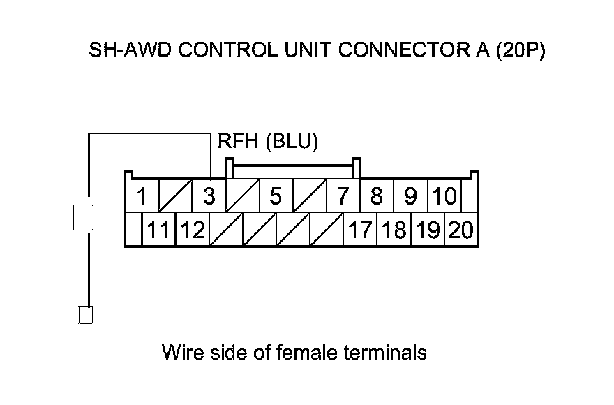 17. Check for continuity between SH-AWD control unit connector terminal A3 and body ground.