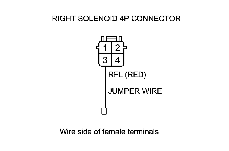 15. Remove the jumper wire from right solenoid 4P connector terminal No. 3.