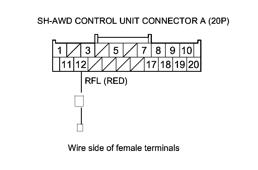 3. Check for continuity between SH-AWD control unit connector terminals A3 and A12.