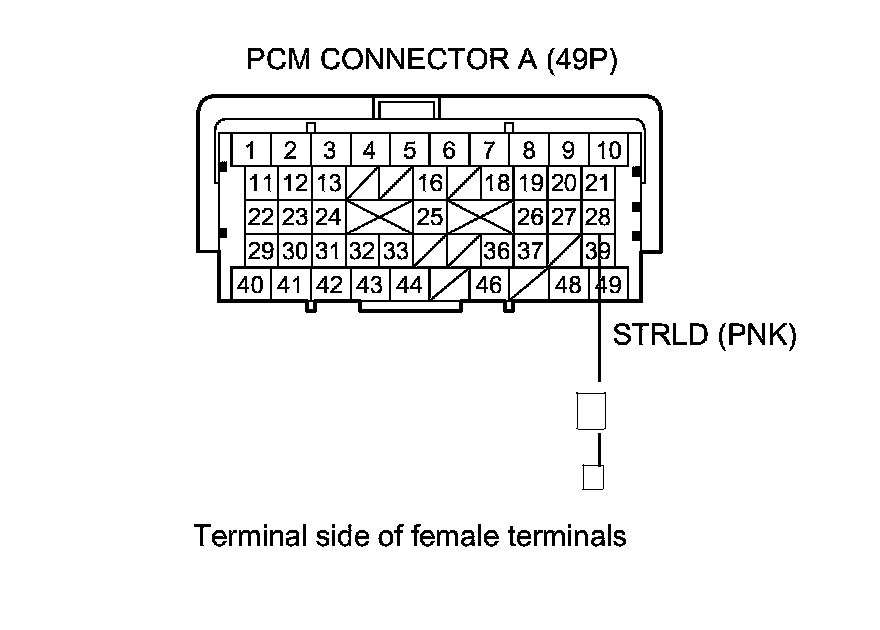 12. Check for continuity between the PCM connector terminal A28 and the body ground.