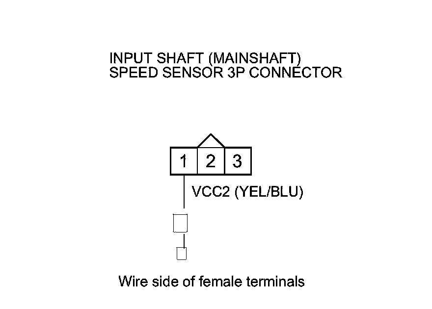 9. Measure the voltage between input shaft (mainshaft) speed sensor 3P connector terminals No. 1 and No. 3.