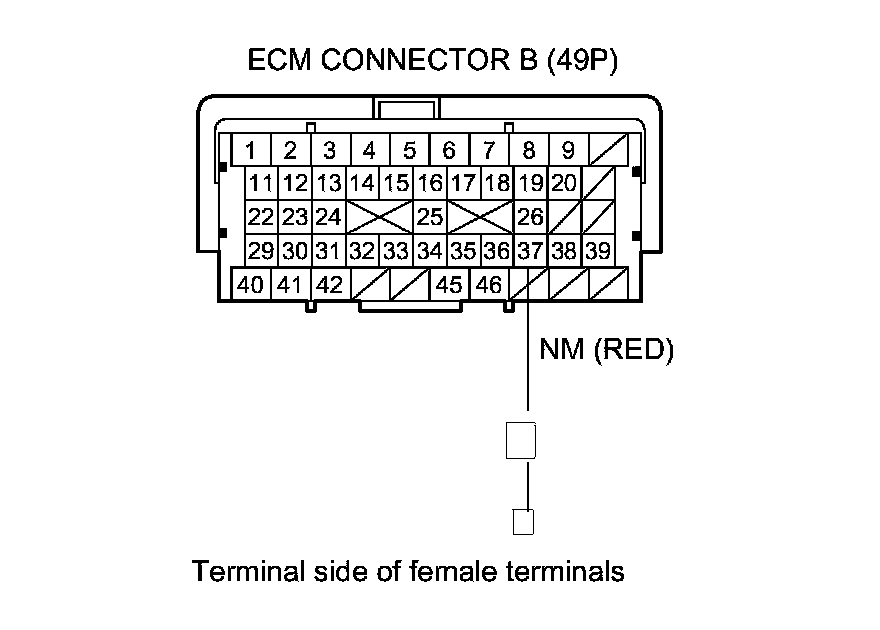 13. Check for continuity between ECM connector terminal B37 and body ground.