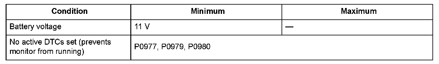 Conditions for setting the DTC