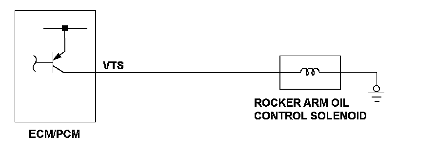 The VTEC system activates the rocker arm oil control solenoid by command from the engine control module (ECM)/ powertrain control module (PCM), and it charges/discharges the hydraulic circuit of the VTEC mechanism that switches valve timing between low and high. If the return signal is ON (high) when the ECM/PCM outputs the OFF (low) signal to the rocker arm oil control solenoid, the ECM/PCM detects a malfunction and stores a DTC.