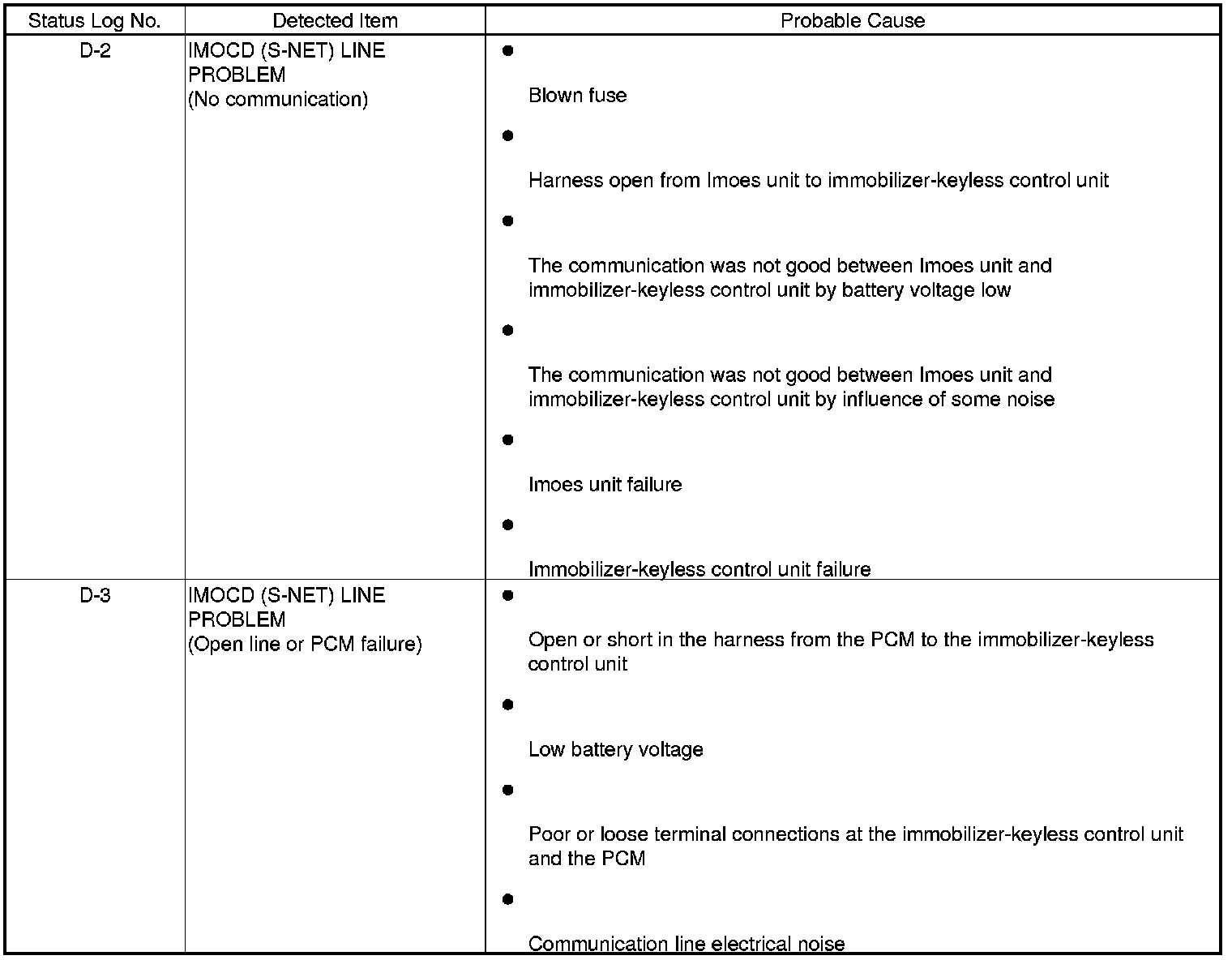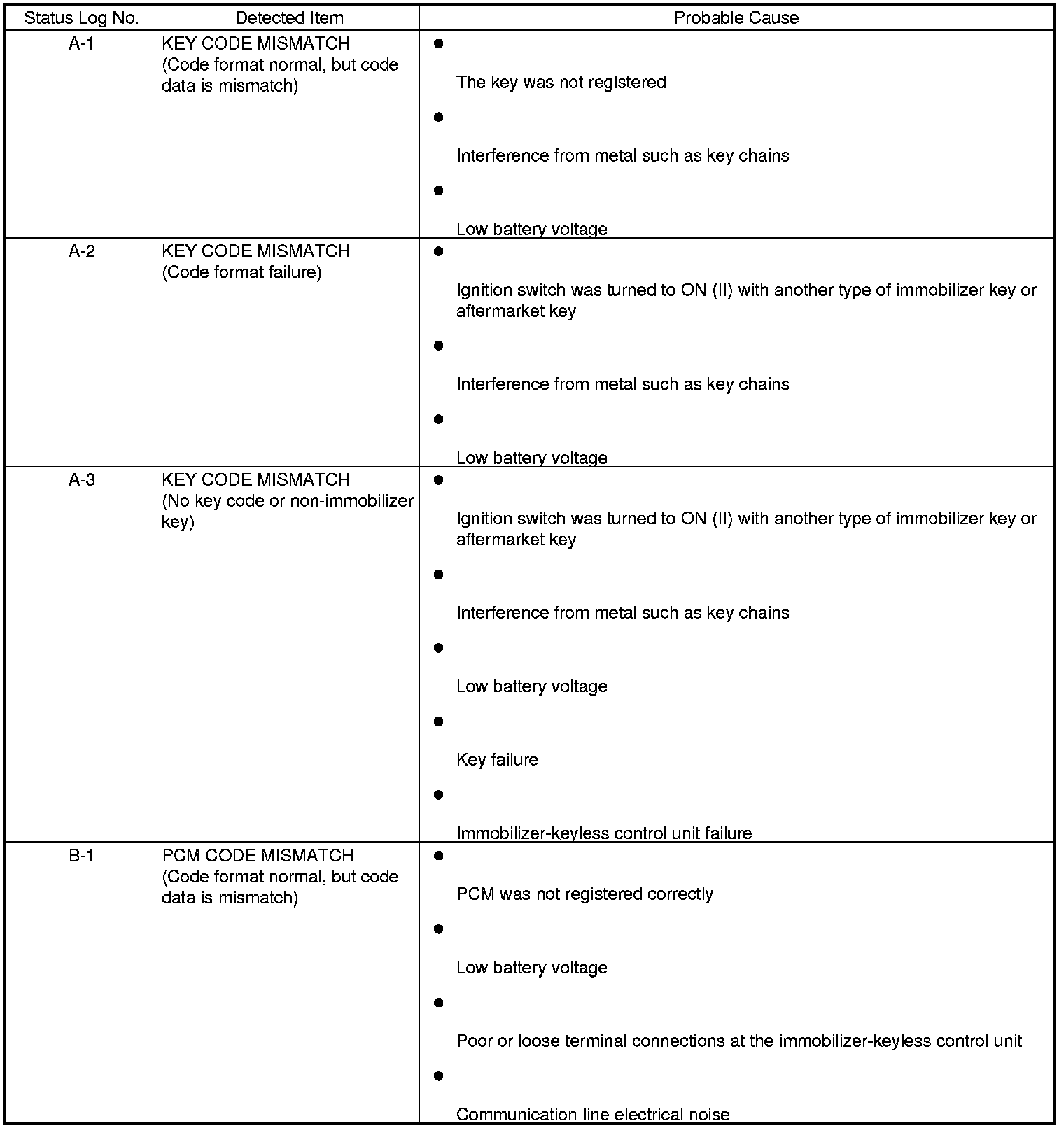Immobilizer System Status Log (Without Keyless Access System)