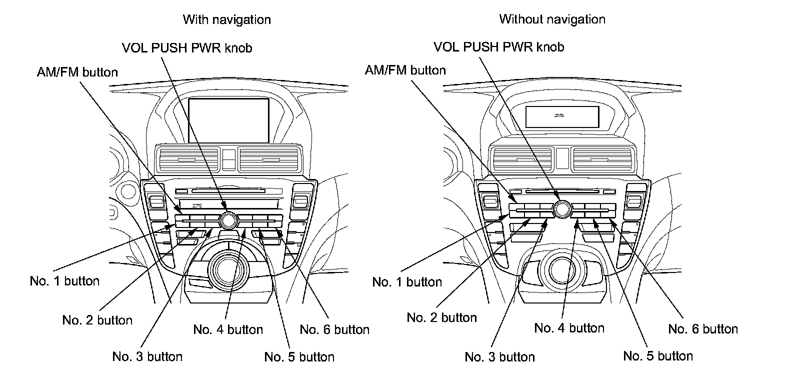 2. Tune to the FM radio station you wrote down in preparation using the TUNE button (with navigation) or selector knob (without navigation), and note the decibel level of that station.