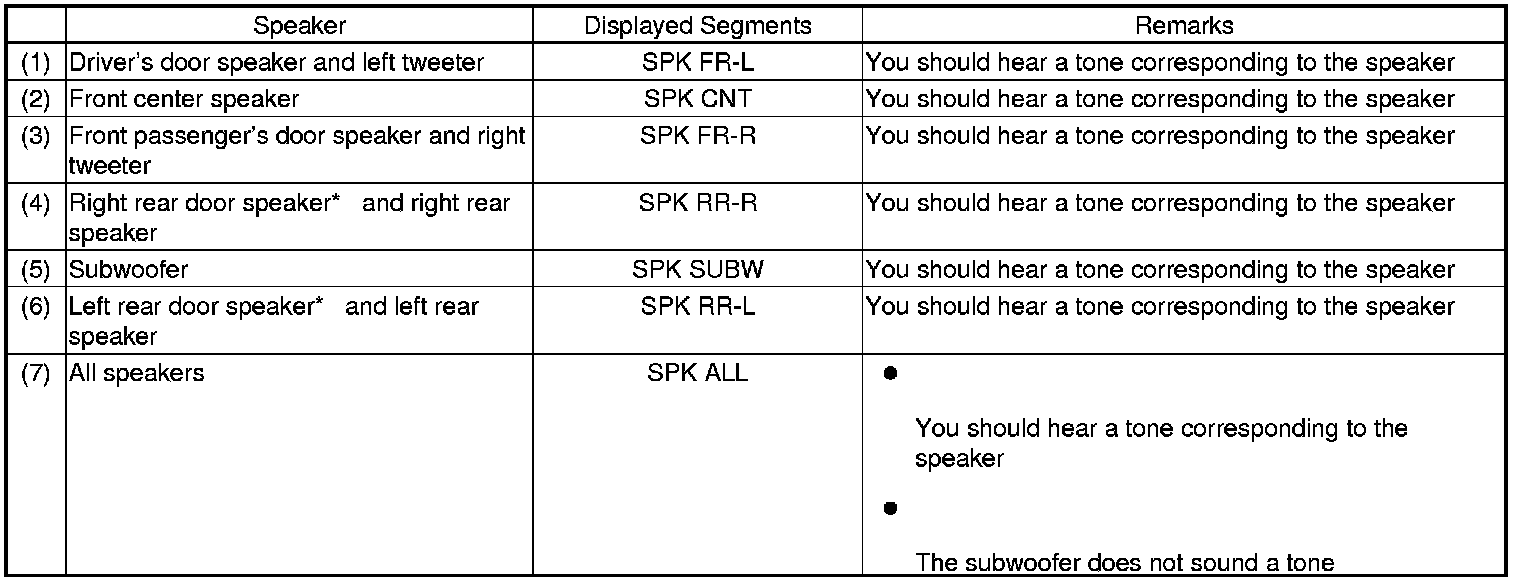 7. The speaker check mode ends when you turn the audio system off or turn the ignition switch to LOCK (0), or press the engine start/stop button to select the OFF mode.