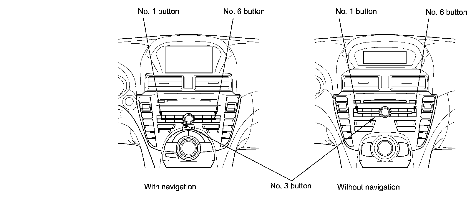 When the display segments are all on, press the No. 3 button. The entire display must turn black. If any segments are stuck on, replace the audio-navigation switch panel Audio-Navigation Switch Panel Removal/Installation, or the audio-HVAC display unit Audio-HVAC Display Unit Removal/Installation (Without Navigation).