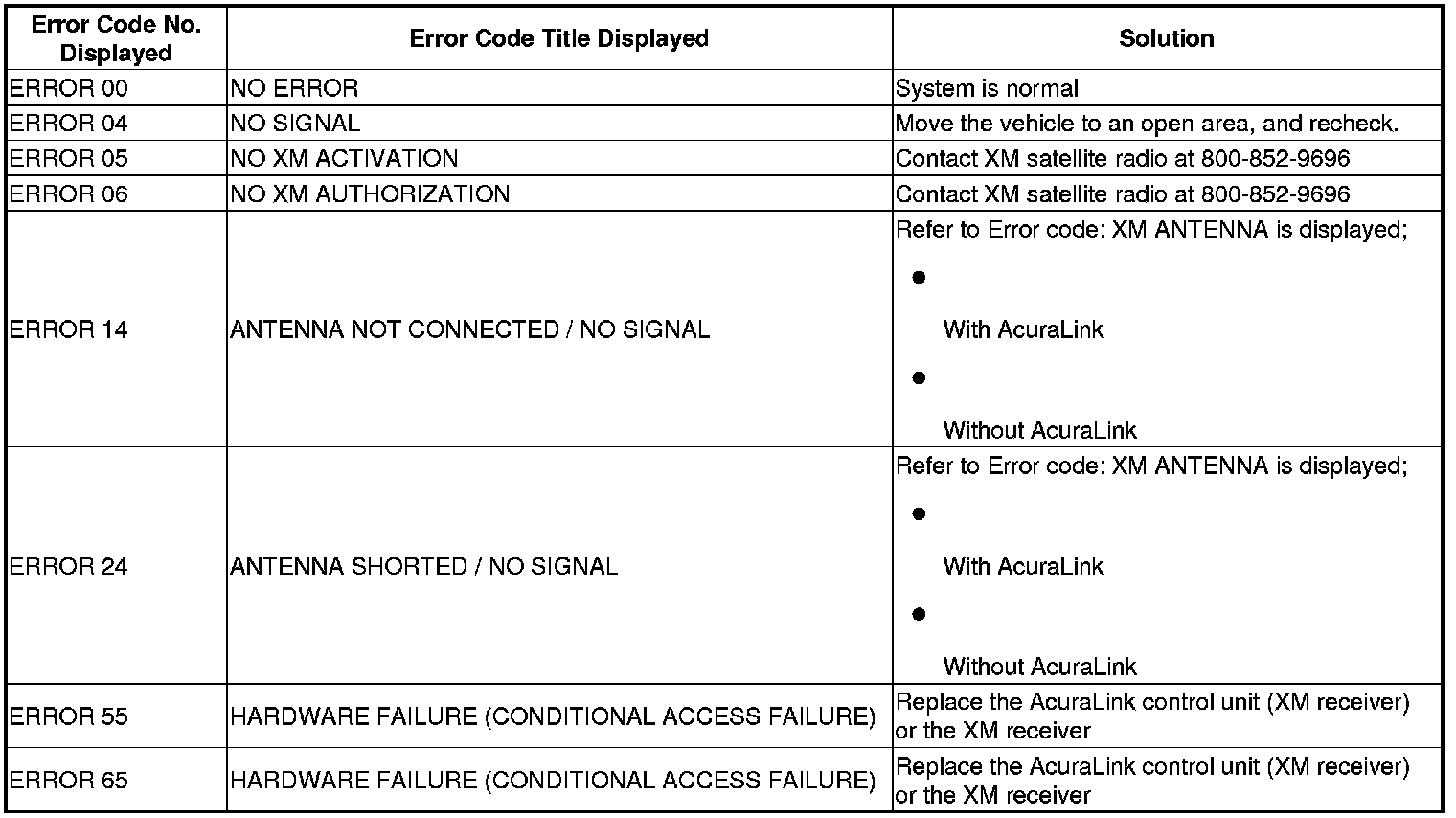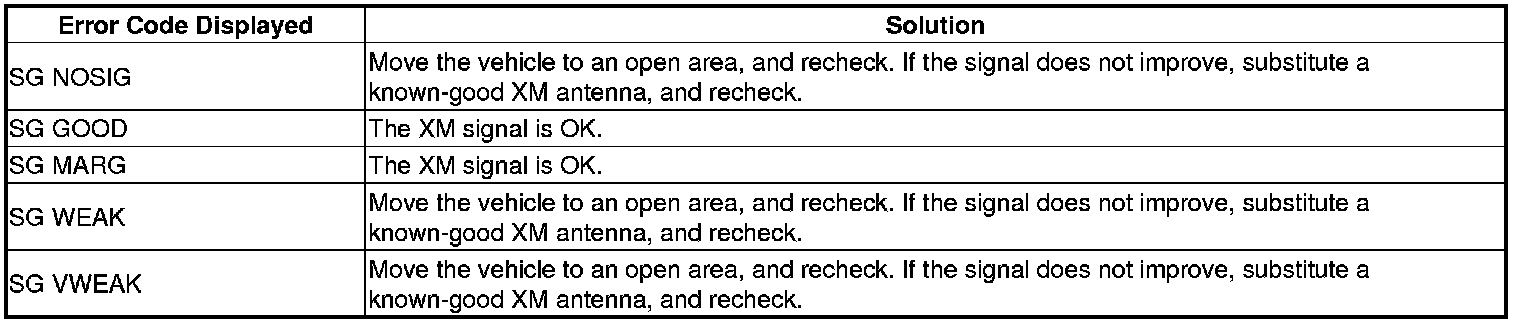 NOTE: When you receive any XM complaint, do the XM self-diagnosis to check for any XM error codes. To get the XM error codes, do the following: