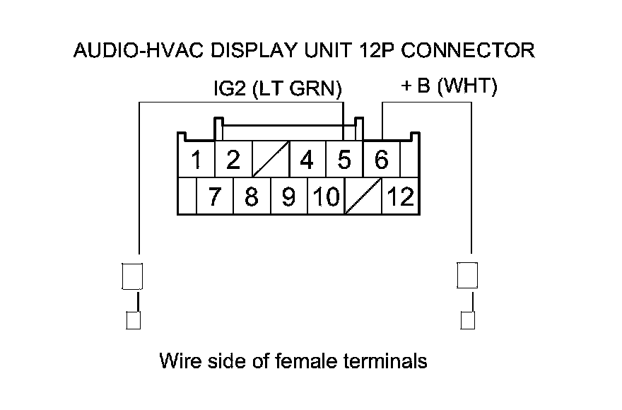 Repair an open in the wire between the No. 15 (10 A) fuse in the under-hood fuse/relay box and audio-HVAC display unit 12P connector terminal No. 6, or repair an open in the wire between the No. 16 (7.5 A) fuse in the driver's under-dash fuse/relay box and audio-HVAC display unit 12P connector terminal No. 5.�