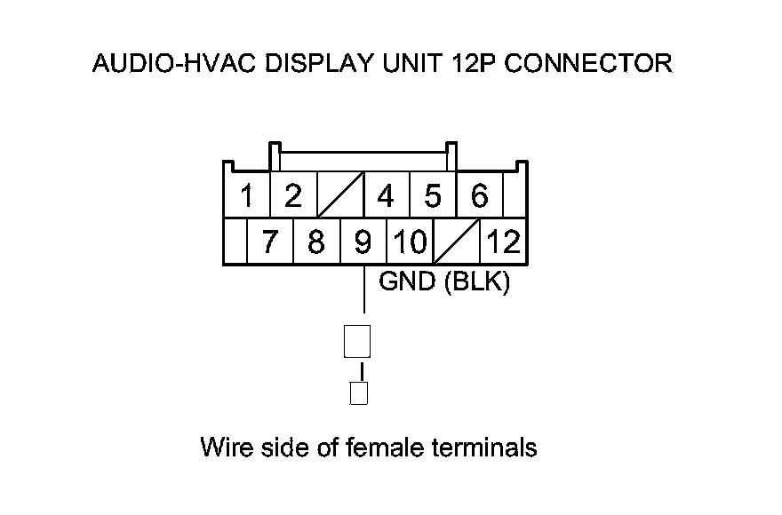 Repair an open or high resistance in the wire between audio-HVAC display 12P connector terminal No. 9 and body ground (G501) Harness Locations.�