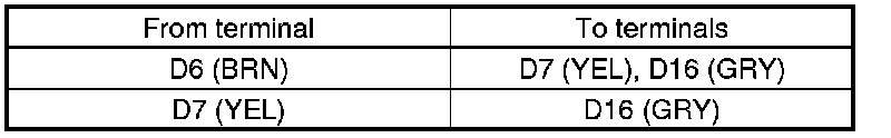 10. Check for continuity between the terminals of audio unit connector D (20P) according to the table.
