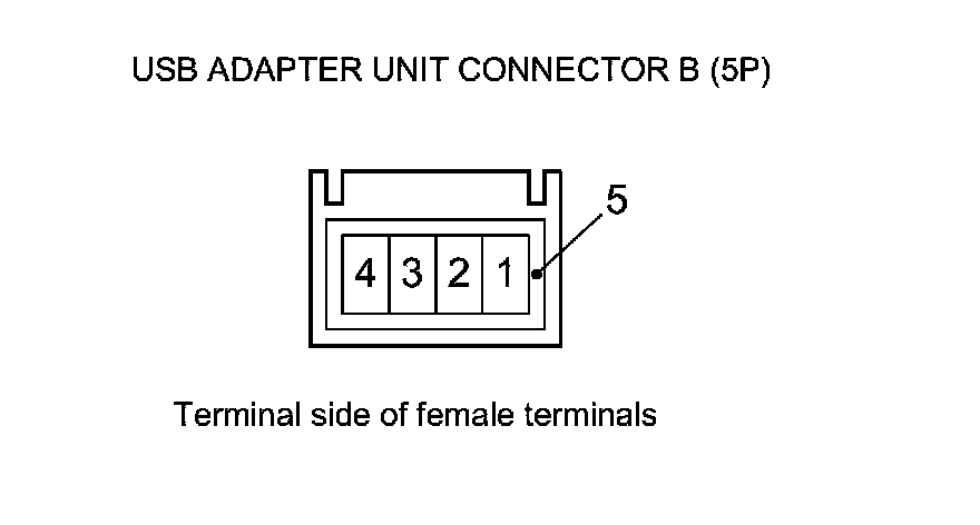 7. Check the connectors at USB adapter unit connector B (5P), the USB adapter cable, and the USB jack.
