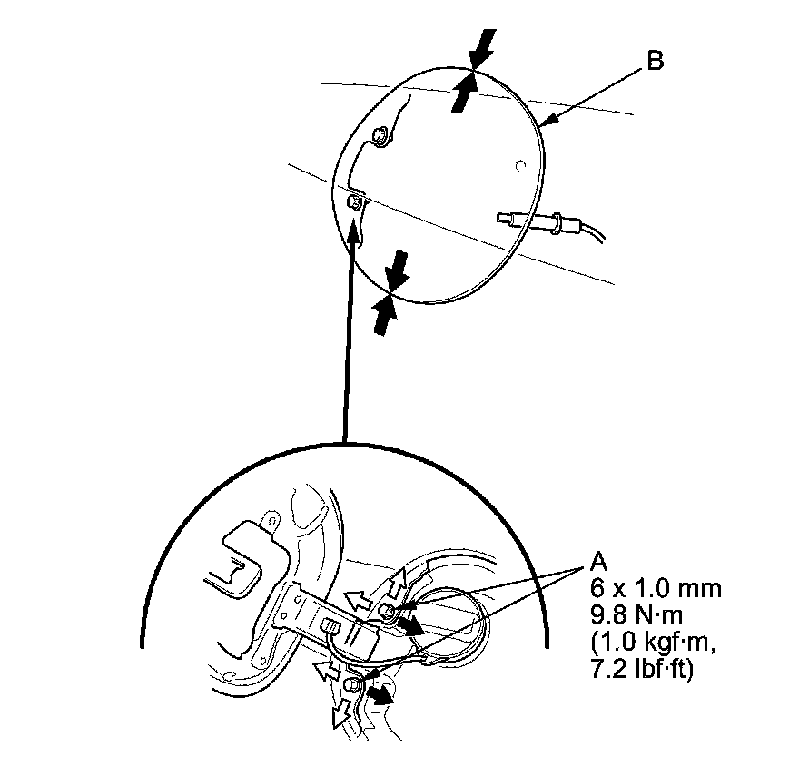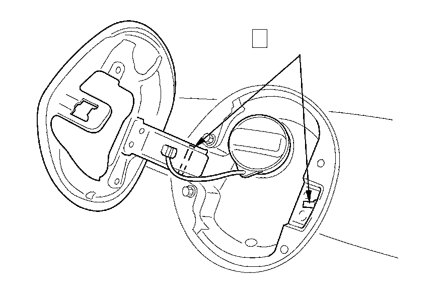 3. Adjust the fuel fill door (B) in or out until it is flush with the body, and up or down as necessary to equalize the gaps.