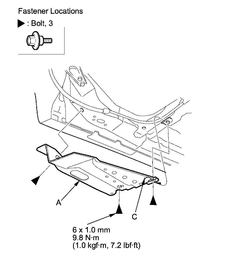 2. Install the undercover in the reverse order of removal, and first attach the hook(s), then set the bolts starting at the rear.