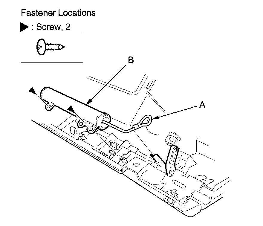 2. Release the glove box damper string (A), remove the screws, then remove glove box damper (B).