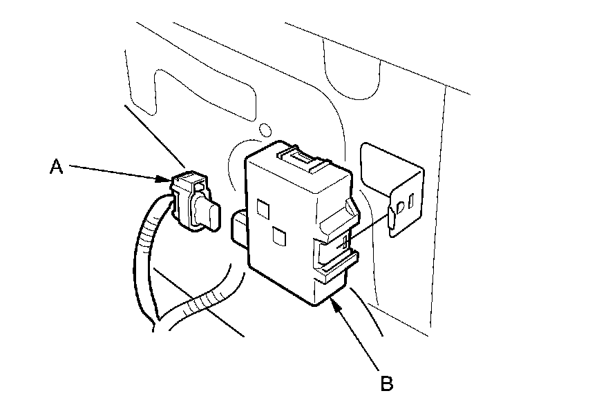 2. Disconnect the 2P connector (A) from the keyless buzzer (B).