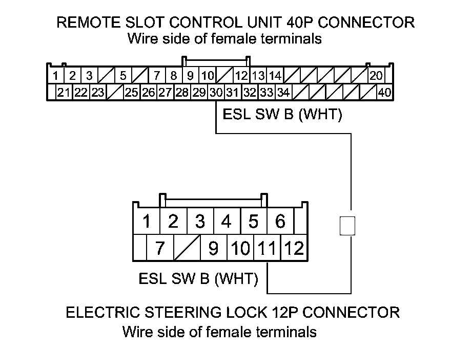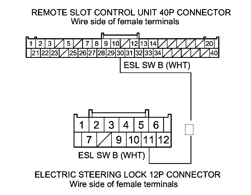 28. Check for continuity between electric steering lock 12P connector terminal No. 11 and remote slot control unit 40P connector terminal No. 30.