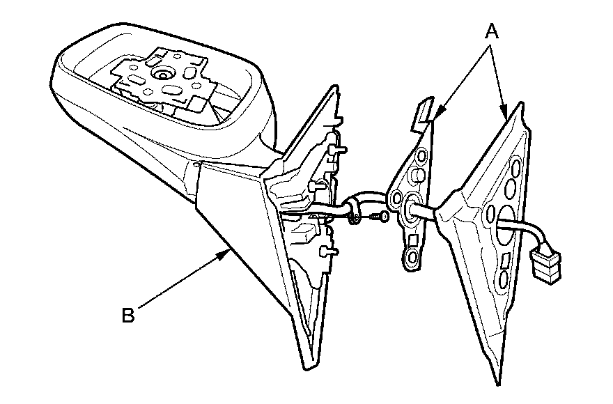 3. Remove the gaskets (A), then remove the screw and cord from the mirror bracket (B).