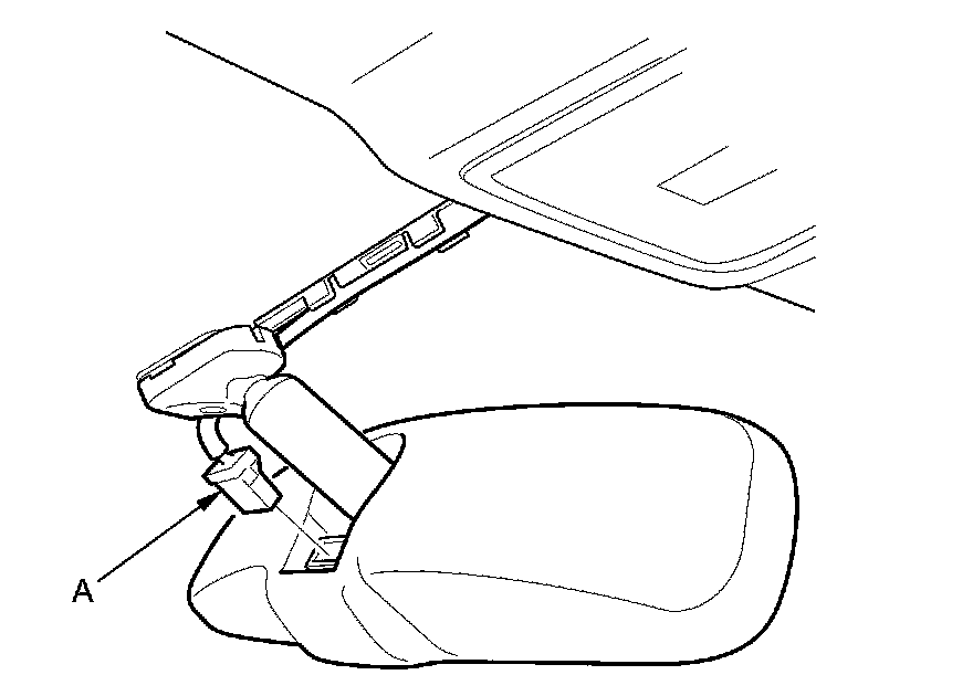 2. Disconnect the rearview mirror connector (A).