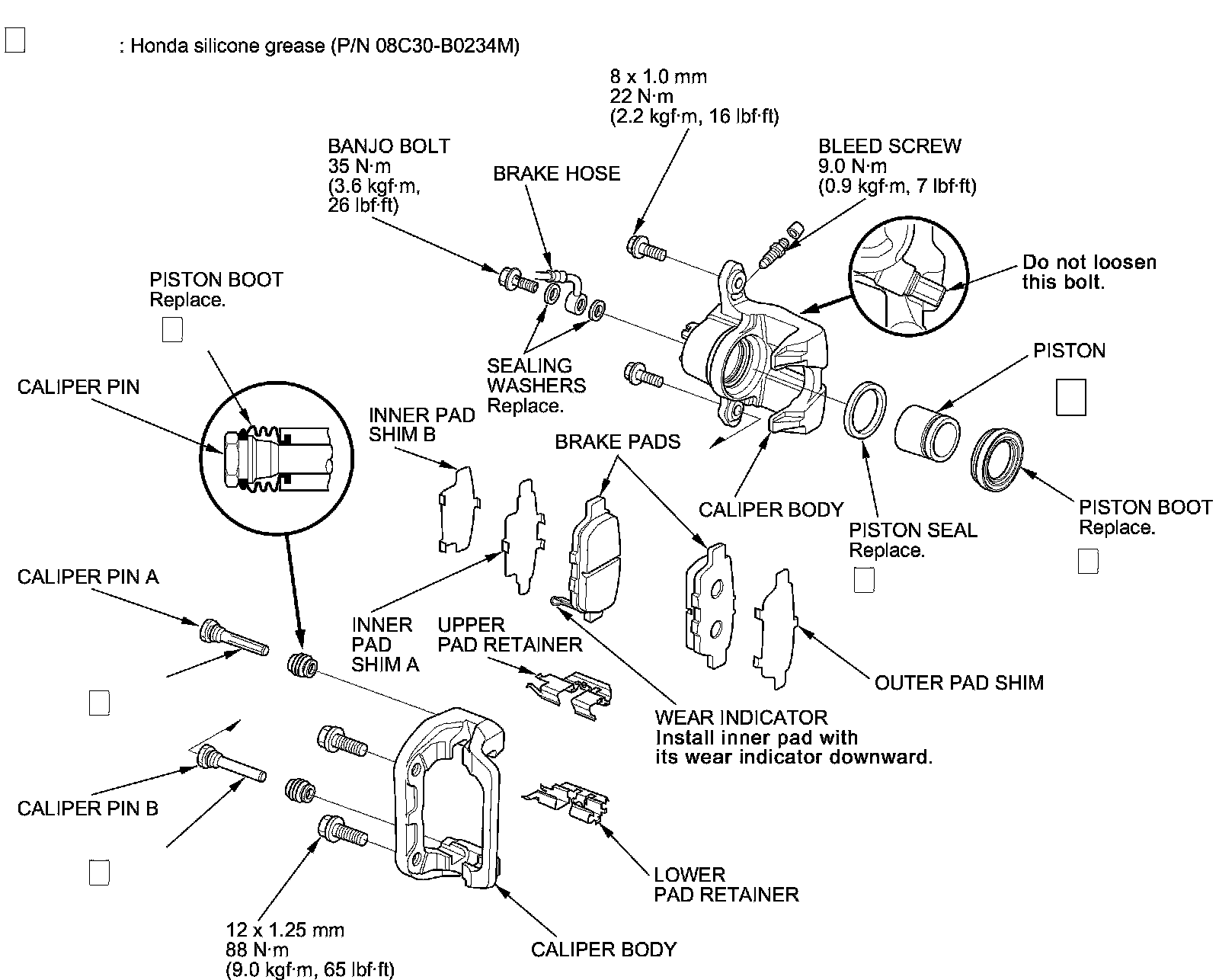 - Use recommended greases in the rear caliper set.