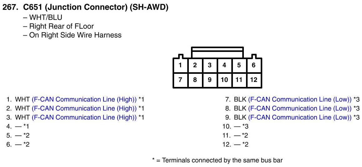 C651 (Junction Connector) Connector View (SH-AWD)