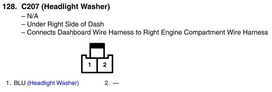 View 128 - C207 Connector View (Headlight Washer)